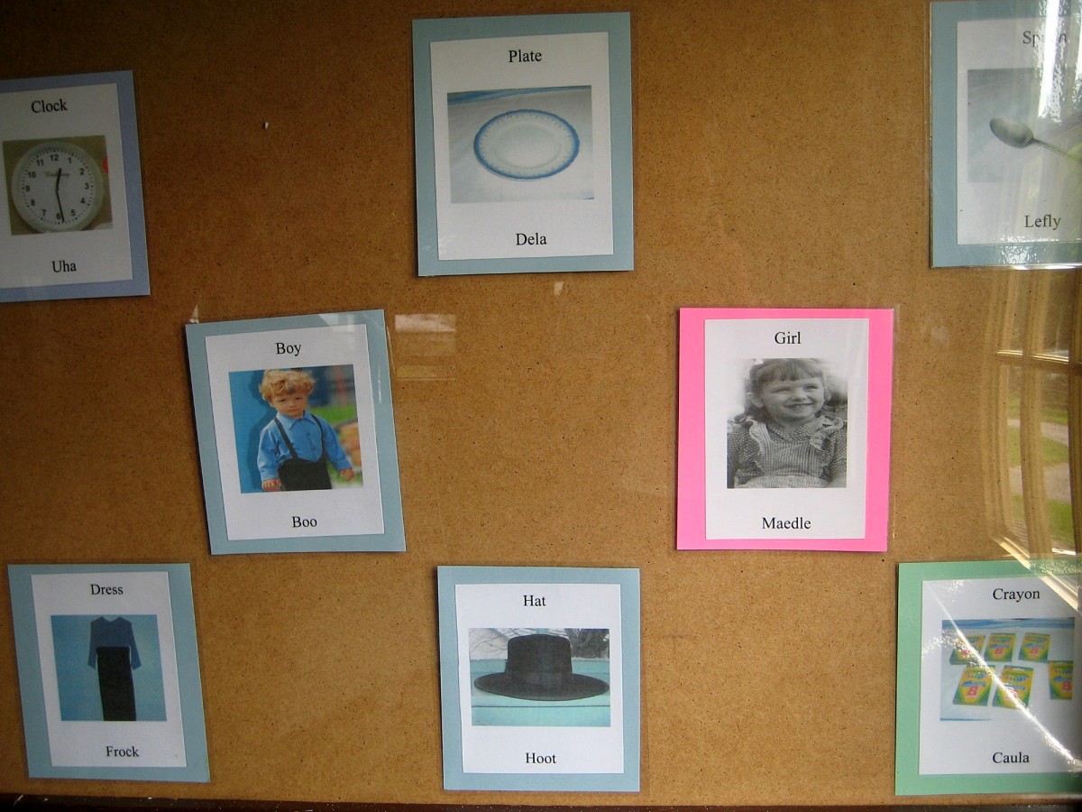 Nach der äußerst interessanten Führung können wir noch auf eigene Faust durch das Dorf bummeln. Sehr spannend ist vor allem die Schule. Viele der Worte, die dort auf Tafeln stehen, kommen uns durchaus bekannt vor, denn die Sprache der Amish ist eine Art Mischung aus Deutsch und Niederländisch. Im Shop entdecken wir ein Schulbuch, mit dem Amish People Hochdeutsch lernen. Ein Satz darin lautet: „Hallo, mein Name ist Susie.“