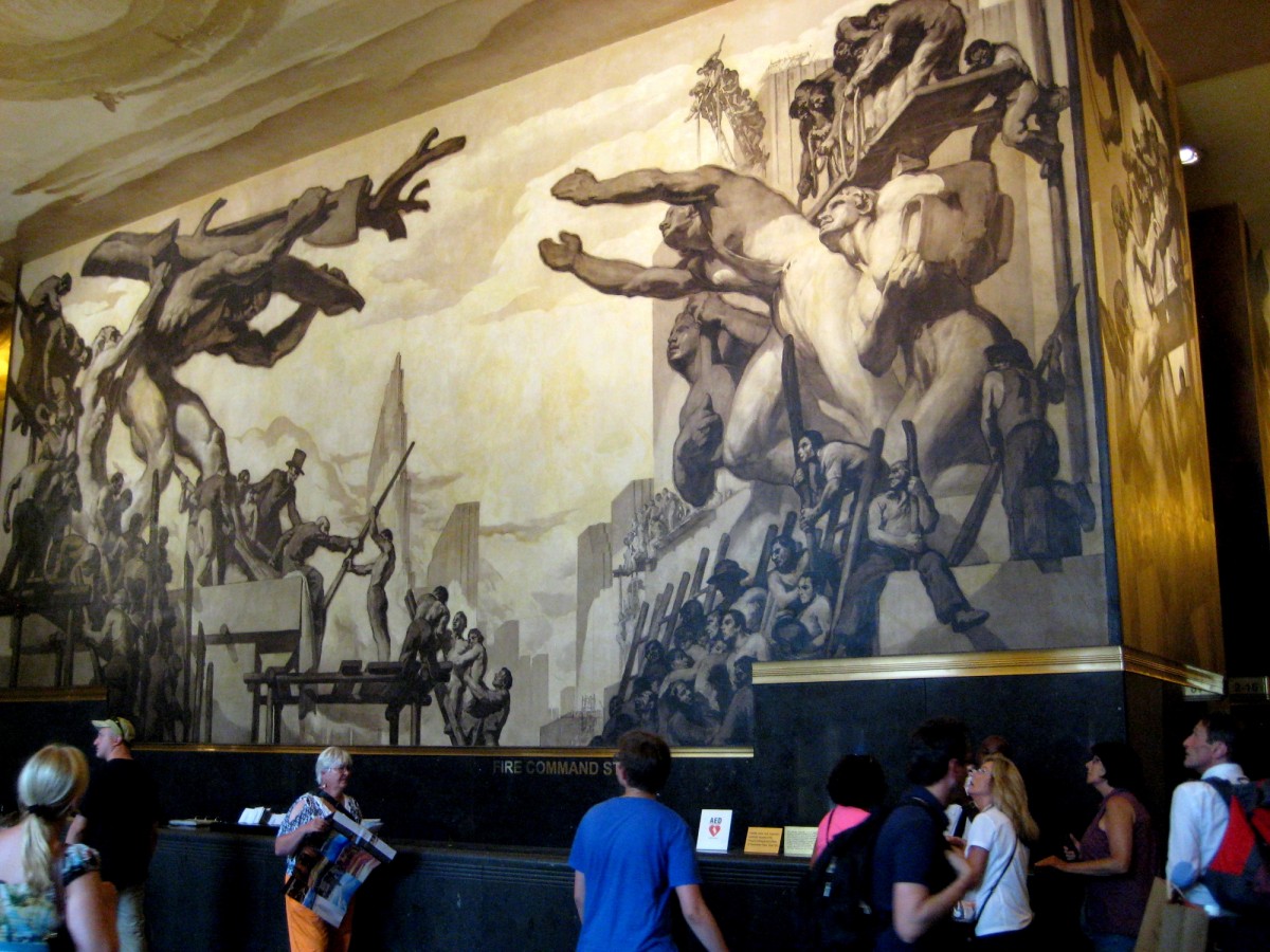 Gleich gegenüber der Kirche ist das Rockefeller Center, das ich bisher nur von Bildern kenne. Lustig: Hier gibt es einen Lego-Shop mit einer Nachbildung des Rockefeller Center und der berühmten Prometheus-Figur. Im Gebäude selbst gibt es viele wuchtige Wandgemälde, uns ist hier jedoch alles ein wenig zu pompös.