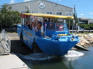 Kaum ist dieses Manöver zu Ende, kommt die nächste Attraktion in Form eines Ducktours-Fahrzeuges. Hierbei handelt es sich um ein Sightseeing-Amphibienfahrzeug, ein Bus an Land und ein Boot im Wasser. Den Passagieren merkt man ihre Begeisterung an.
