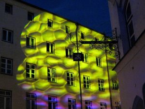 Eine dieser vielen Veranstaltungen ist „Wasserburg leuchtet“, das jedes Jahr am ersten Freitag nach Ende der Sommerferien stattfindet. Dabei gibt es bewegte Lichtinstallationen zu bewundern, die die altehrwürdigen Gebäude in bunten Farben erstrahlen lassen, es wird Livemusik geboten, es gibt Stände mit Essen und Trinken, dazwischen Liegestühle zum Chillen… die ganze Stadt ist in eine einzigartige Atmosphäre getaucht.