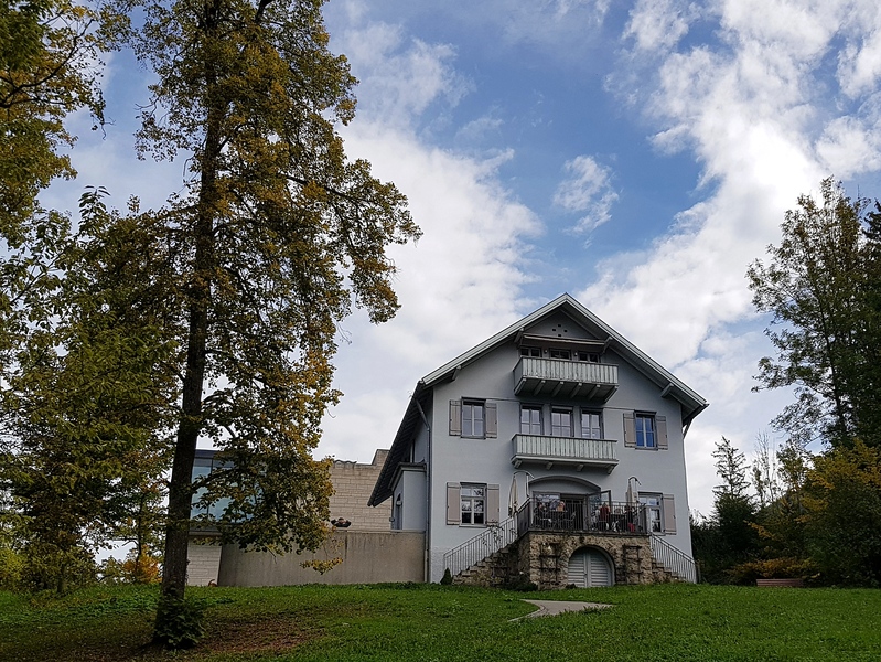 Die Fahrt dorthin dauerte von uns aus knapp eineinhalb Stunden, wobei wir einmal quer durch München fahren mussten, was an diesem Tag aber zum Glück ohne Stau möglich war (alle übrigen Autos strebten wohl eher in Richtung Oktoberfest). So erreichten wir schon bald den Kochelsee und den Parkplatz des Museums. Das Museum selbst liegt auf einer Anhöhe oberhalb des Sees, man muss vom Parkplatz aus ca. 5-10 min. Fußweg einplanen, allerdings zum Teil steil bergauf. Dafür lohnt von oben die Aussicht auf den Kochelsee.