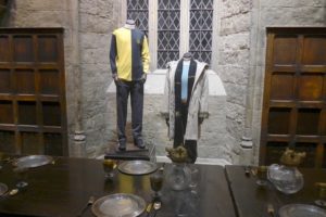 Danach wird die Aufmerksamkeit auf ein großes Tor gelenkt. Ein Mädchen, das an diesem Tag Geburtstag hatte, durfte das Tor öffnen und voilà: Plötzlich steht man am Eingang zur Großen Halle. Hier sind auch viele Kostüme der Schauspieler ausgestellt: