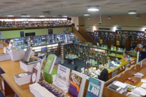 Vorbei an der Seufzerbrücke und dem Trinity College kamen wir schließlich zum Blackwell’s Book Shop. Auch auf diesen wurde ich durch einen meiner Bildbände aufmerksam, leider war die wunderschöne Ladenfassade aber gerade eingerüstet. Einen guten Eindruck davon kann man sich auf der Webseite des Geschäfts verschaffen. Von außen sieht der Laden klein und beschaulich aus, umso größer dann die Überraschung, wie weitläufig das Geschäft tatsächlich ist: