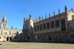 Da wir mittlerweile gemerkt hatten, dass es überhaupt kein Problem ist, die Colleges zu betreten, wenn man sich als interessierte Familie von potentiellen Studenten ausgibt (und wir hatten ja zum Glück zwei Jungs im passenden Alter dabei), versuchten wir nun doch nochmal unser Glück im Christ Church College. Und siehe da, wir durften das Gelände völlig problemlos betreten und gelangten so zunächst in den großen Innenhof: