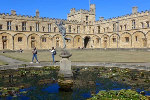 Anschließend überquerten wir die High Street und spazierten zwischen den altehrwürdigen Gebäuden hindurch zu einem Park beim New College. Dann stellte sich heraus, dass wir von dort aus ungehindert das Gelände des New College betreten konnten. Im Rahmen des „Open Day“ boten Studenten Führungen über das Campusgelände an und so schlossen wir uns ganz unauffällig solch einer Besichtigung an: