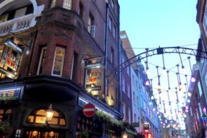 Und ich machte nochmal ein Foto vom Big Ben, von dem aus dieser Perspektive zumindest das Zifferblatt zu erkennen war. Dann stiegen wir in die U-Bahn und fuhren zum Oxford Circus. Von hier waren es nur ein paar Schritte bis zur Carnaby Street, wo wir ja schon am vergangenen Sonntag durchspaziert waren. Jens war dabei ein Blues Café aufgefallen, wo wir nun auf einen Drink einkehrten: