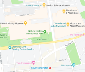 Der Rest der Familie konnte etwas geruhsamer in den Tag starten. Die Ferienwohnung mussten wir spätestens bis 11 Uhr räumen, waren aber schon viel früher reisefertig. Unser Flug ging um 16.30 Uhr, also genügte es, gegen 13 Uhr mit der U-Bahn ab South Kensington in Richtung Heathrow zu starten. Ich hatte geplant, zum Abschluss noch das schöne Café im Victoria & Albert Museum zu besuchen, doch wohin mit unserem Gepäck? Hätten wir ein Hotel gebucht, hätten wir die Koffer womöglich dort deponieren können, aber so mussten wir uns eine andere Möglichkeit suchen. Schließfächer an Bahnhöfen gibt es nämlich in London aus Sicherheitsgründen so gut wie gar nicht. Im Internet war ich durch unsere Vermieterin auf „Stasher Luggage Storage“ gestoßen, dort kann man online nach Aufbewahrungsmöglichkeiten suchen und im voraus buchen. Meist kostet das um die 5 Pfund pro Gepäckstück plus Bearbeitungsgebühr. Ich war schon drauf und dran, das zu buchen, als wir entdeckten, dass man seine Koffer auch im Science Museum abgeben kann und das auch noch deutlich günstiger. Da das ohnehin auf dem Weg lag, war unsere Wahl somit klar.