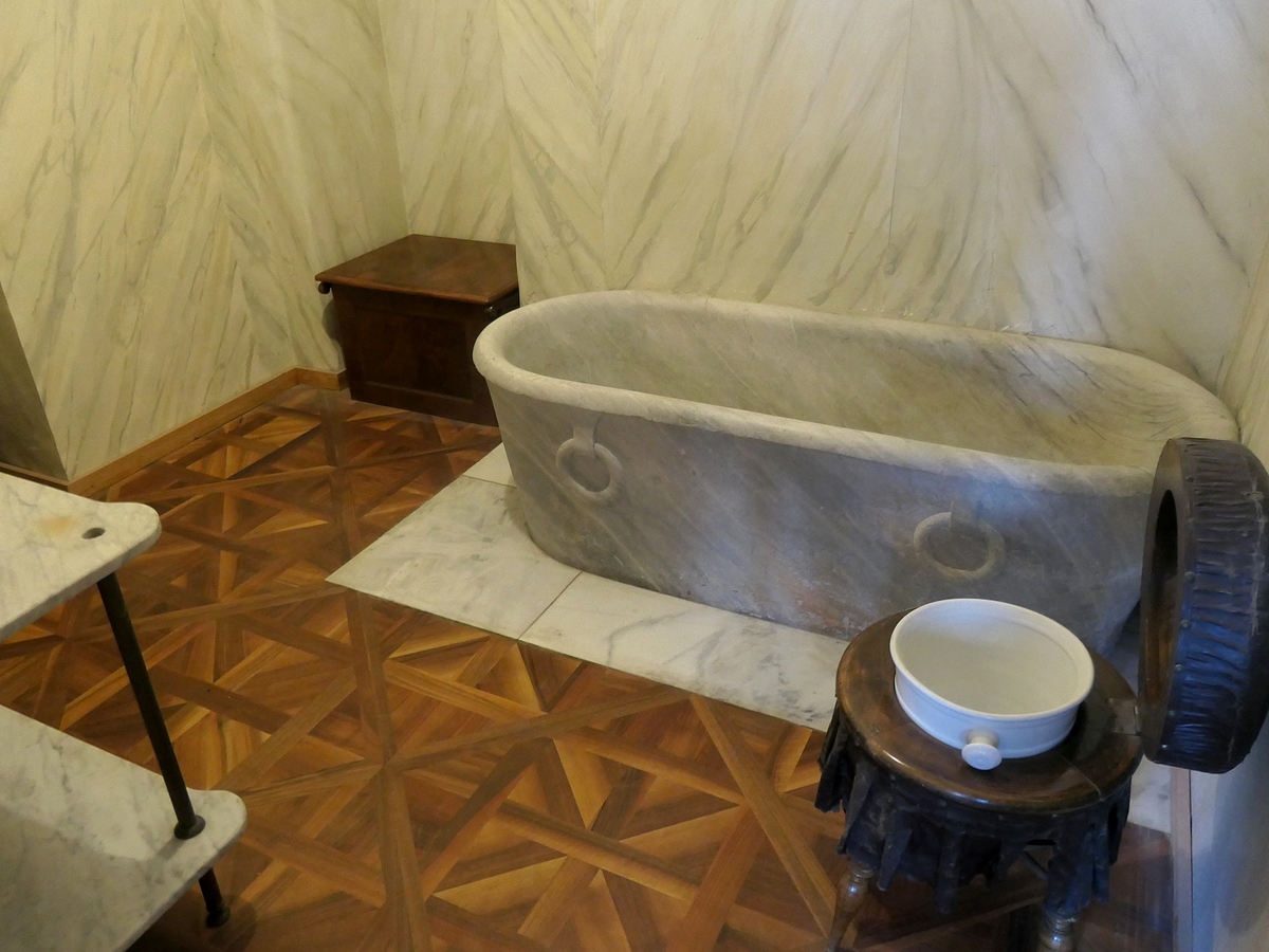 Natürlich wollten wir uns das Schloss aber auch von innen ansehen. Und hier war ich besonders positiv überrascht, denn das Interior wirkte auf mich weniger formell als oftmals geradezu gemütlich. Vor allem die vergleichsweise modernen Badezimmer haben mich beeindruckt – ja, und natürlich die tolle Bibliothek! Nicht nur die österreichische Kaiserin Sisi war hier zu Besuch, wie auf einem Gemälde dargestellt ist. Auch der bayerische König Ludwig II. ist hier verewigt. Gebaut wurde das Schloss übrigens für Maximilian, den Bruder des österreichischen Kaisers. Der hatte allerdings nicht lange was davon, denn er wurde zum König von Mexiko ernannt, verließ das Schloss und wurde nur drei Jahre später in Mexiko erschossen. Seine Nachfahren haben das Schloss aber weiterhin bewohnt.