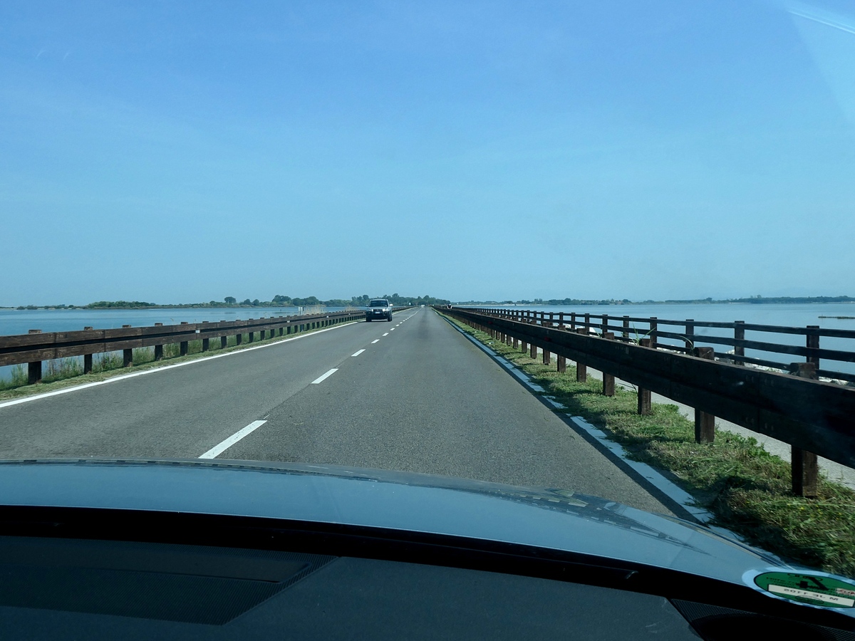 Noch einmal fuhren wir über den Damm quer durch die Lagune, diesmal in Richtung Autobahn.