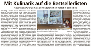 Wie in jedem Jahr wurde mir der Abschied vom Sommer dadurch versüßt, dass der Herbst mit vielen schönen literarischen (Presse-) Terminen aufwartete. Allen voran ist da die Veranstaltungsreihe „Literarischer Herbst Zorneding“ in unserer Nachbargemeinde zu nennen, die auch heuer wieder ein vielfältiges Programm bot.